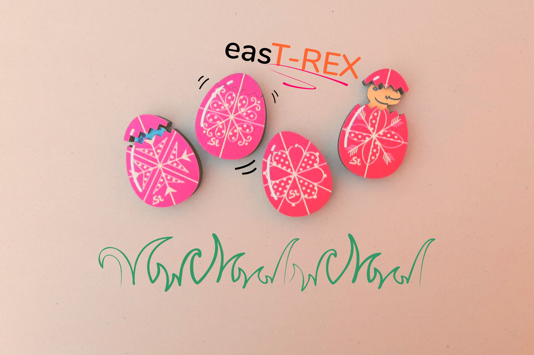 Elkészültek az első igazi játékszereim, azaz a mozgatható húsvéti dínótojások!