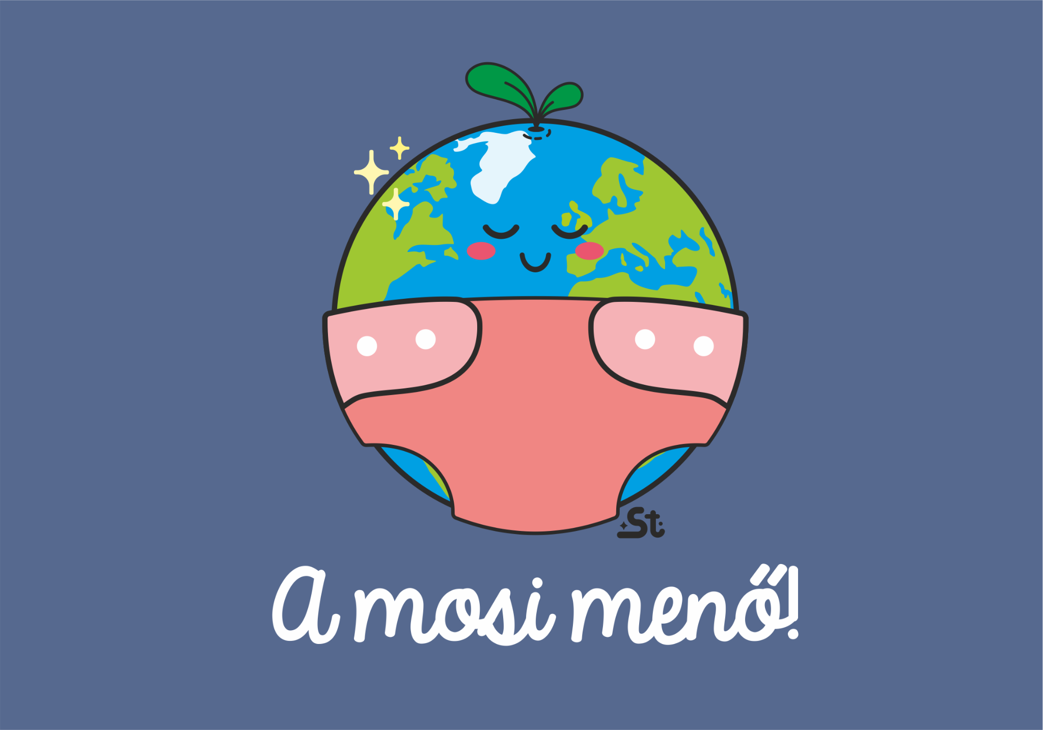 Végül sok-sok mellékvágány után csak leskicceltem a pelenkás földgömböt és bevallom, szinte az első pillanattól IMÁDTAM! Néha nagyon nehezen elégszem meg egy-egy grafikával, de ez az első perctől kezdve szerelem volt, minimális korrekciókat végeztem csak rajta a digitális változat elkészülése óta. A kibújó, apró levelek, amik az utolsó elemek voltak a rajzomon pont olyanok lettek, mint hab a tortán: témába vágóak, ugyanakkor tovább gondolva cuki babahajra is asszociálni lehet rájuk.