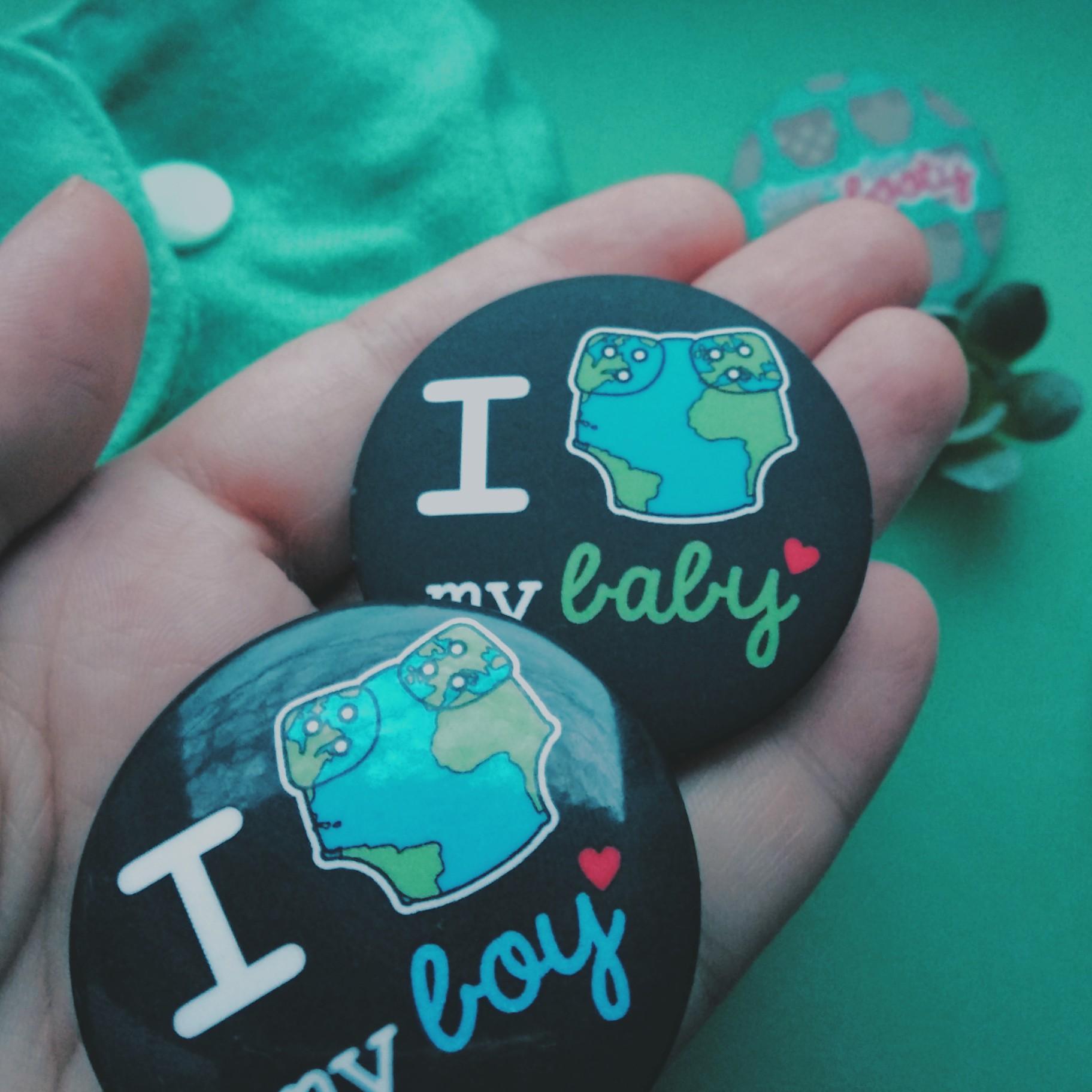 Itt jött a neheze. Az első pillanattól a pelenkás földgömb volt az, amit el tudtam ehhez képzelni, de azt gondoltam, lehet, hogy ez kicsit sok lenne... Ezért inkább mindenféle mással kísérleteztem. Pislogó szemes pelenkák, I ♥ New York inspirálta szöveges próbálkozások... A második, feliratos verzióról kitűzők és egy fotó is készült a kedvenc merinói gyapjú pelenkánkkal, de a szemestől inkább megkímélnélek Titeket, mert az "ez egy pingvin?" még egy enyhe megjegyzés volt rájuk. :)
